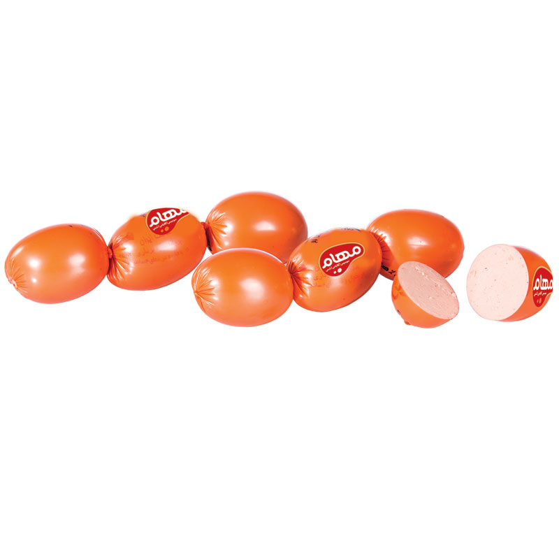 ترکیبات: گوشت قرمز 55% ، روغـن، آرد گندم، سیـر، نمک تصفیـه خوراکی، شیر خشک، نشاستـه، ادویـه، گلوتن، تخـم مـرغ، فسفـات سدیـم، اسیـدآسکوربیک، نیتریت سـدیم، آب ویخ.