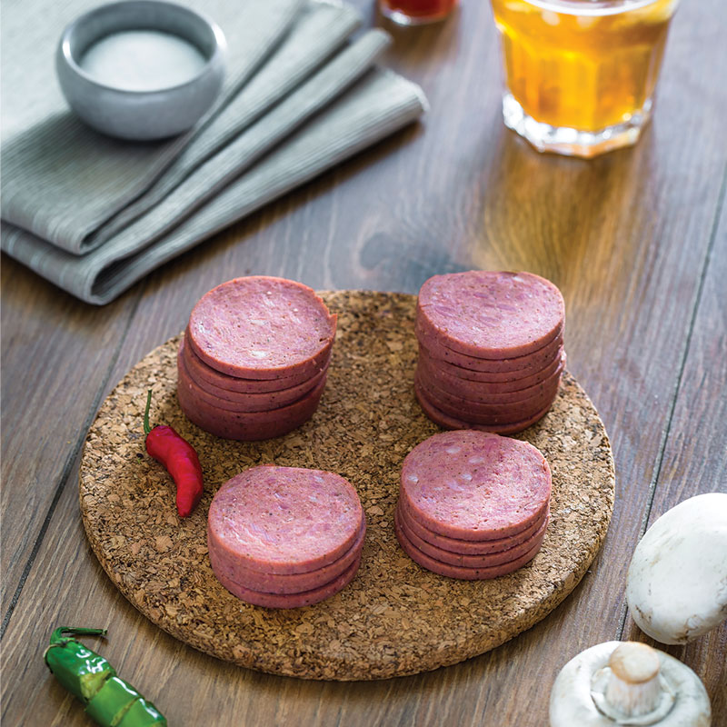 ترکیبات: گوشـت قرمز 70%، روغن، نشاسته گندم، سیر، نمک تصفیه خوراکی، ادویه، شیر خشک، تخم مرغ، گلوتن، کازئینات سدیم، فسفات سدیم، اسیدآسکوربیک، نیتریت سدیم، آب ویخ.